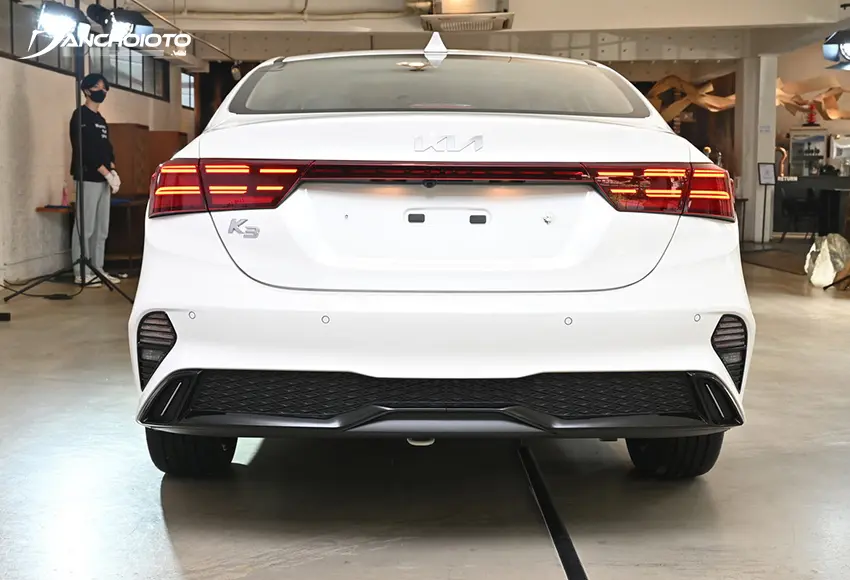 Phần đuôi Kia K3 2023 cũng có một vài thay đổi đáng chú ý. Cụm đèn hậu LED sử dụng đồ hoạ mới cùng phong cách với đèn trước, rất gãy gọn, tinh tế và hiện đại. Dải phản quang phía dưới nép vào hai bên. Ốp cản sau sơn đen mở to, trông bề thế và hút mắt hơn.