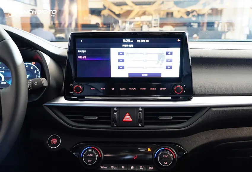 Kia K3 2023 Premium được đánh giá cao khi trang bị màn hình xe HD kích thước lên đến 10.25inch – lớn nhất phân khúc. Màn hình tích hợp đầy đủ Apple CarPlay/Android Auto, Bluetooth, hệ thống định vị Navigation… Bản Deluxe và Luxury dùng màn hình 8 inch. Tất cả các bản đều có âm thanh 6 loa.