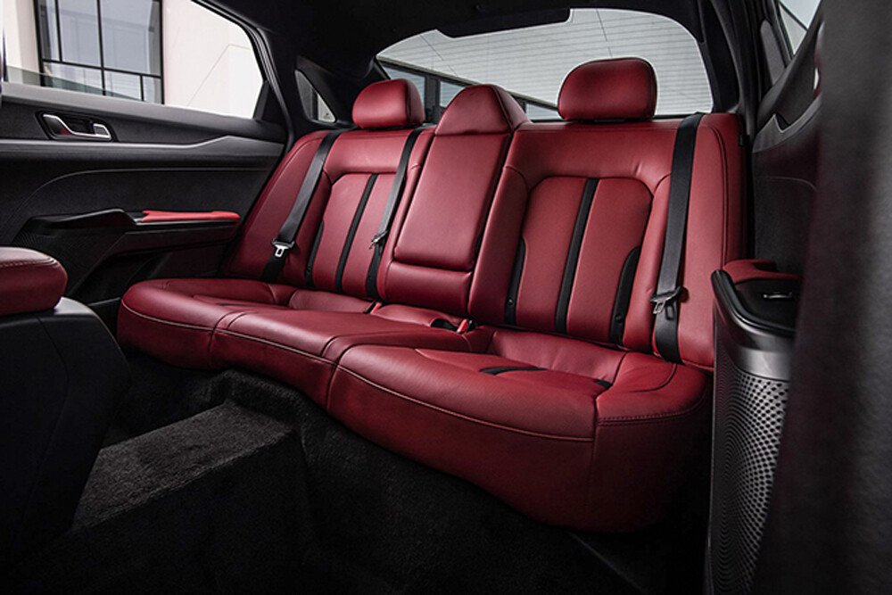 Chất liệu ghế ngồi trên xe được bọc giả da. Thiết kế ghế trước có tính năng chỉnh điện, hệ thống sưởi và làm mát. Ghế lái có nhớ vị trí. Tiến xuống hàng ghế thứ 2 có thêm tính năng làm mát. Xe được trang bị thêm cổng sạc USB cho hàng ghế thứ 2. Bên cạnh đó, để đảm bảo sự riêng tư và thoải mái cho hàng ghế thứ 2, K5 còn được trang bị thêm rèm che năng và cửa gió điều hòa riêng.