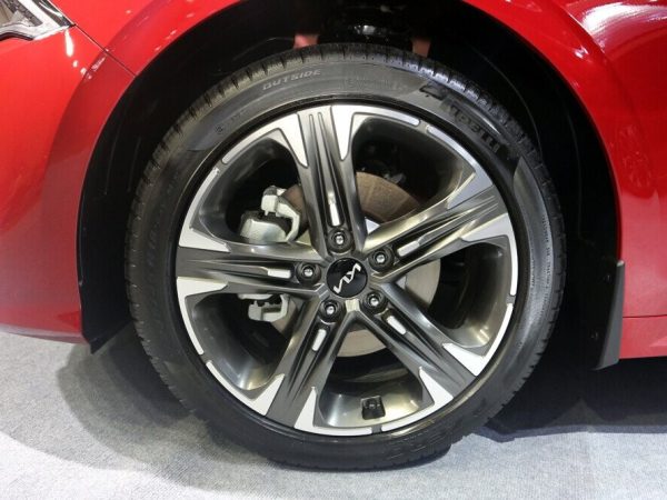 “Dàn chân” bên dưới của Kia K5 cũng rất hút mắt với bộ lazang 5 chấu thiết kế mới. Tất cả phiên bản đều sử dụng lazang hợp kim 18inch kết hợp bộ lốp 235/45R18.