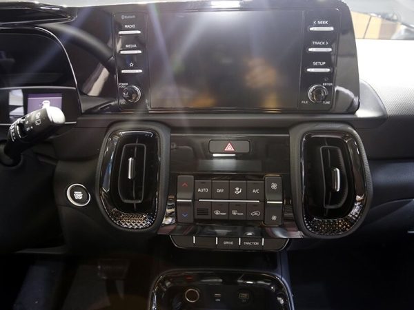 Xe sử dụng màn hình nổi đặt ngang liền mạch với cụm đồng hồ sau vô-lăng, điều hòa được bao bọc bởi 2 cửa gió đặc trưng tương tự như Sorento.
